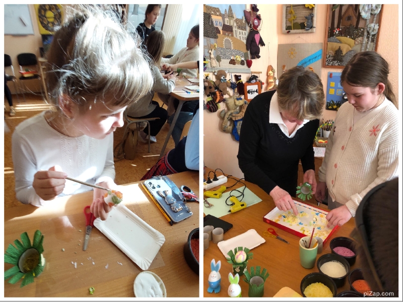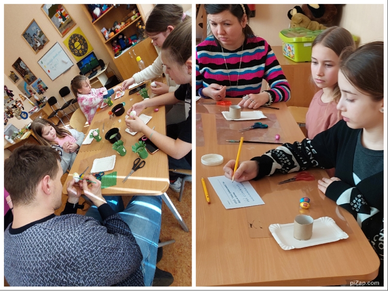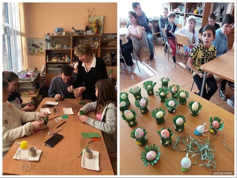 Pēc spēles bērni piedalījās radošajā darbnīcā “Lieldienu olas dekorēšana un statīva izgatavošana”. Šoreiz bērni dekorēja olu ar krāsainu mannu, bet statīvu veidoja no papīra rullīšiem un kreppapīra. Bērniem un jauniešiem patika šī neparasta dekorēšanas tehnika, īpaši bērniem ar īpašām vajadzībām, turklāt darbs ar birstošiem materiāliem veicina bērnu kognitīvo attīstību un uzlabo smalko motoriku.